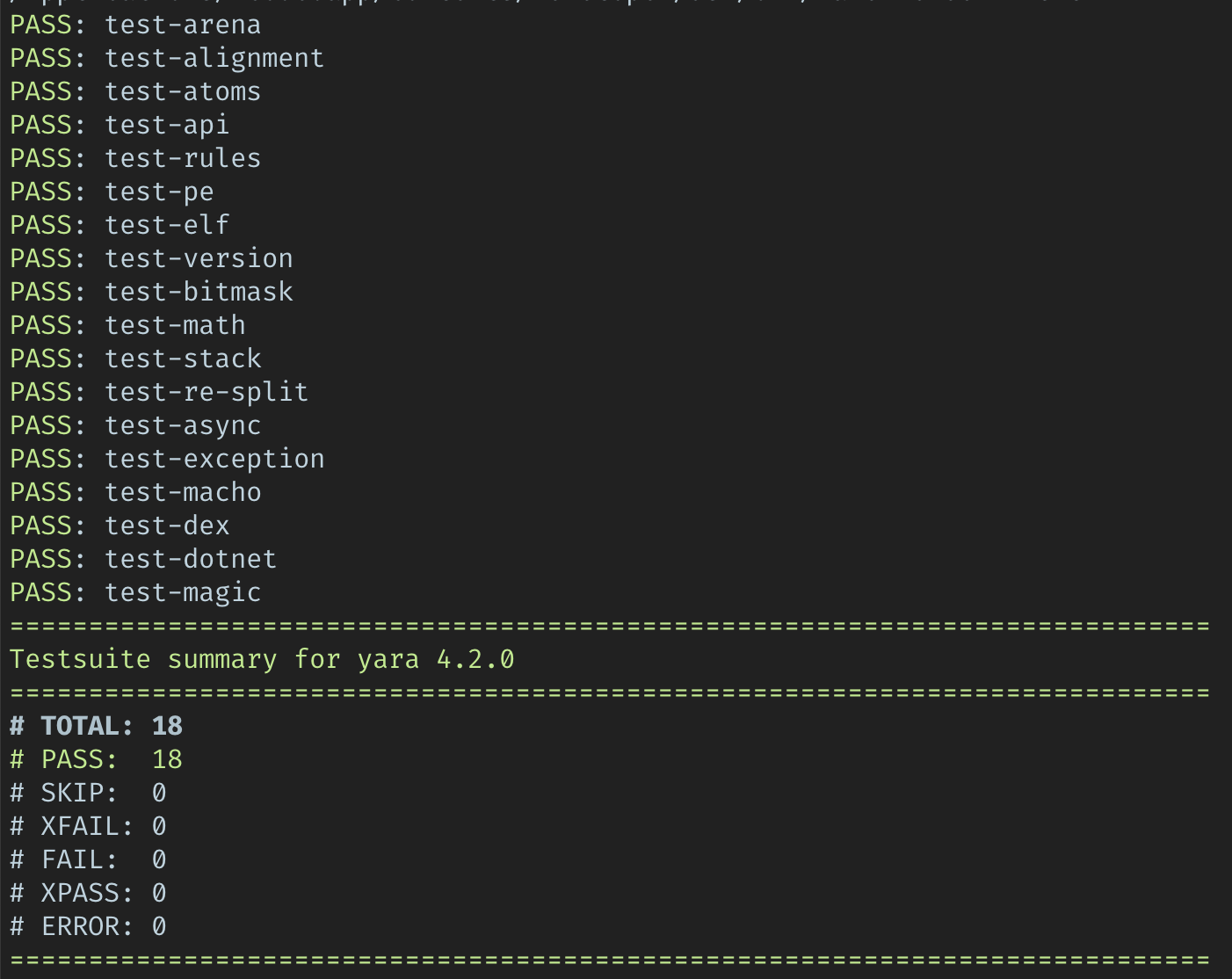 Next step will be to get the YARA source from https://github.com/VirusTotal/yara/releases and following the official installation guide.tar -zxf yara-4.2.0.tar.gz